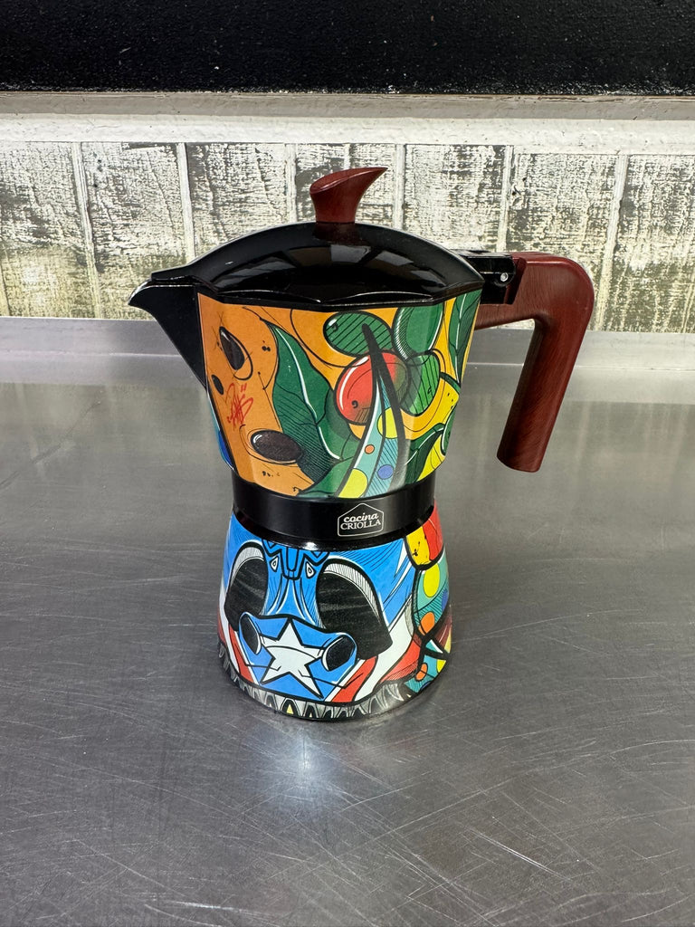 Elevate your coffee ritual with our Artisan Stovetop Espresso Coffee Maker, a true celebration of art, culture, and bold design. This limited-edition moka pot features a vibrant, hand-painted-style design inspired by tropical flora and Afro-Caribbean heritage, perfect for collectors and coffee lovers alike.